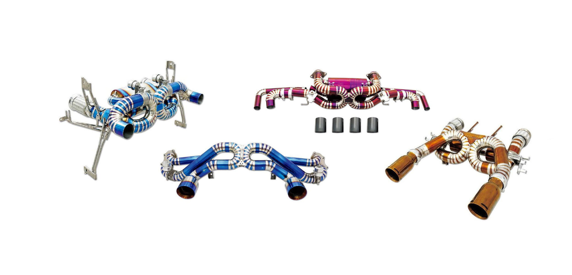 With our Titanium exhaust systems, we can achieve wide range of colors for your new exhaust through anodization process ranging from blue, gold into purple and intermittent vibrant hues.